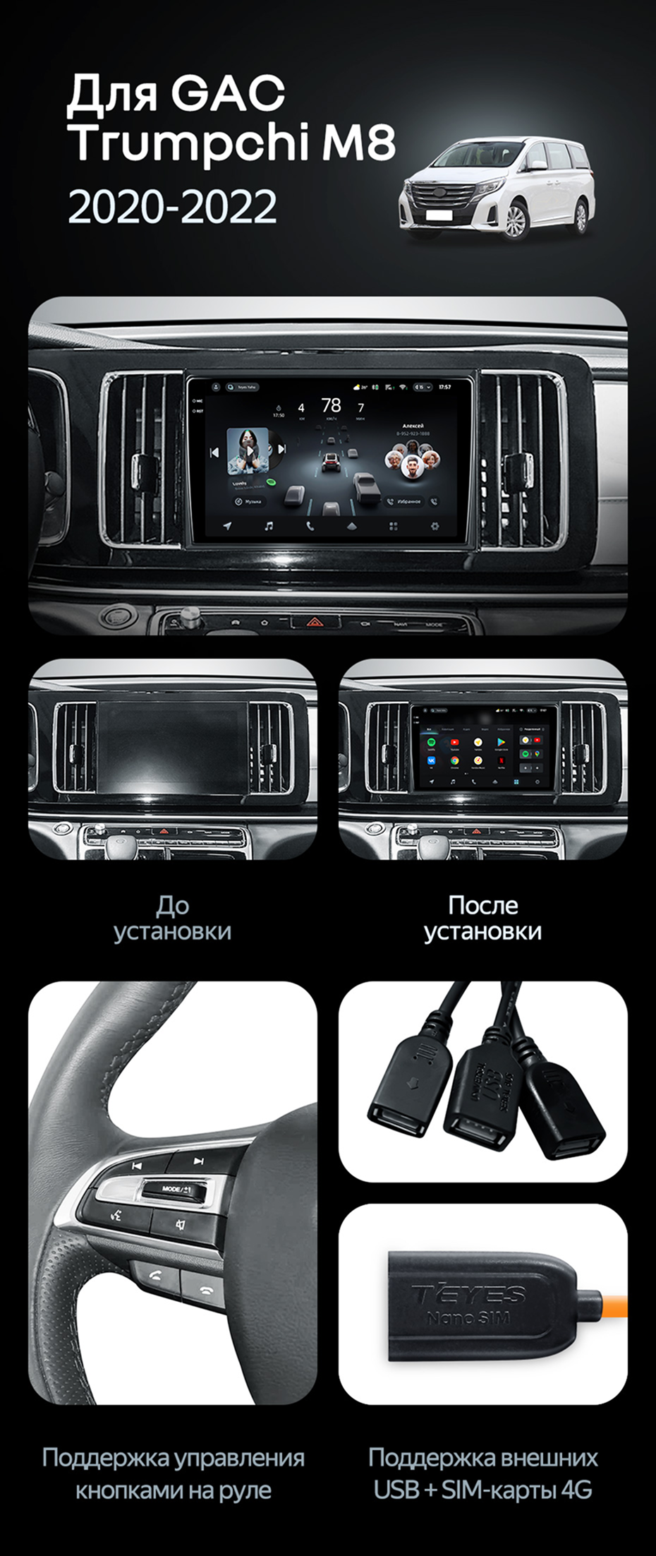 Штатная магнитола Teyes CC4 Pro 360 12/256 GAC Trumpchi M8 (2020-2022) - купить всего за 88 850 руб. в интернет-магазине в Энгельсе Teyes.com.ru. ✓ Самый лучший выбор мультимедиа ✓ Лучшая замена штатному ГУ ✓ Тел. +7 (800) 775-31-74