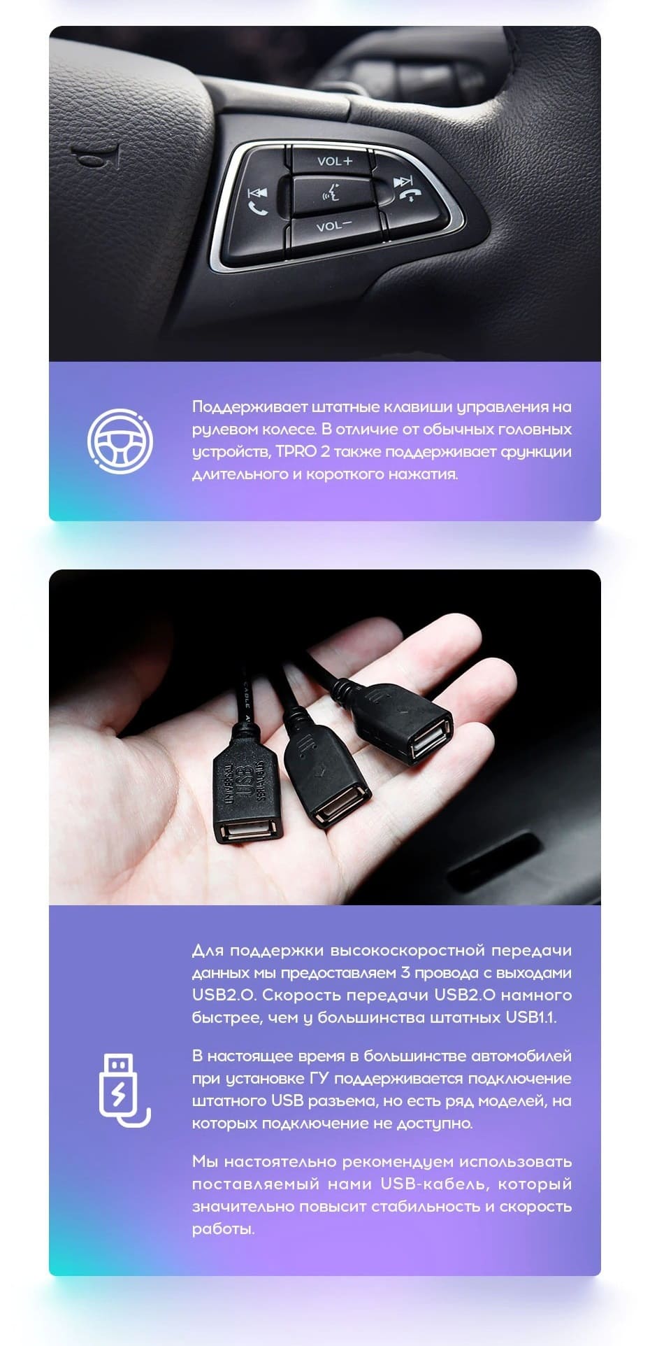 Автомагнитола Teyes TPRO 2 с первых минут эксплуатации навсегда изменит ваше представление о комфортной, безопасной езде. Эта модель в прямом смысле напичкана инновационными разработками из мира интеллектуального управления и штатных автомобильных контроллеров. С таким апгрейдом ваш автомобиль превратится в новейшую мультимедийную систему, которая может практически всё.