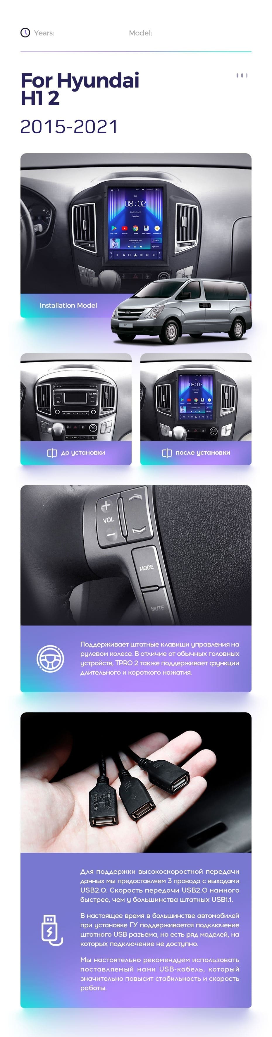 Штатная магнитола Tesla style Teyes TPRO 2 4/64 Hyundai H1 TQ (2015-2021) - купить всего за 39 900 руб. в интернет-магазине в Москве Teyes.com.ru. ✓ Самый лучший выбор мультимедиа ✓ Лучшая замена штатному ГУ ✓ Тел. +7 (800) 775-31-74