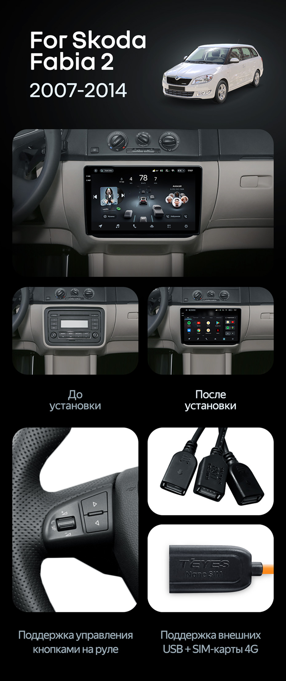 Штатная магнитола Teyes CC4 Pro 8/128 Skoda Fabia 2 (2007-2014) (13") - купить всего за 67 800 руб. в интернет-магазине в Москве Teyes.com.ru. ✓ Самый лучший выбор мультимедиа ✓ Лучшая замена штатному ГУ ✓ Тел. +7 (800) 775-31-74