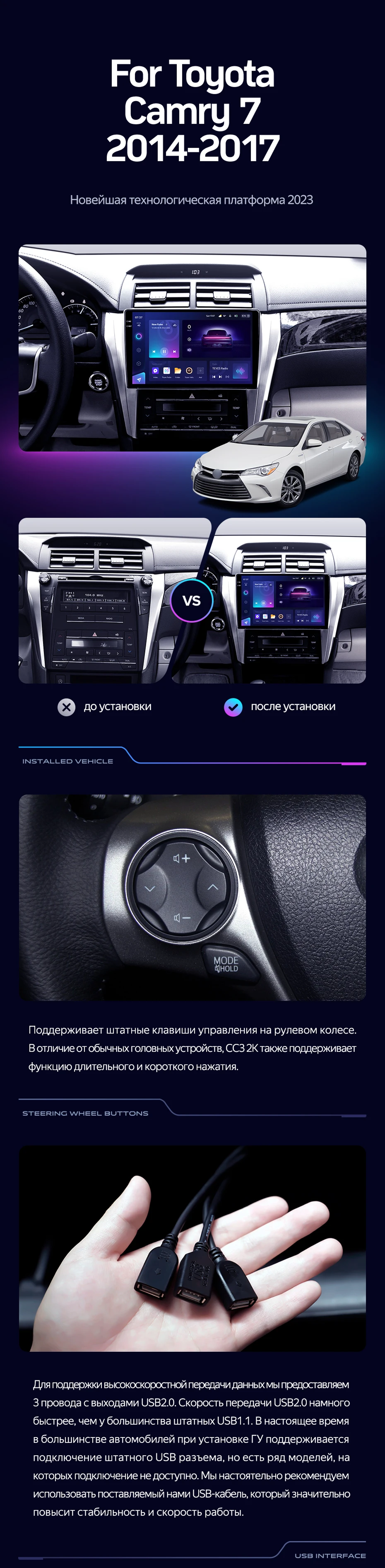 Штатная магнитола Teyes CC3 2K 4/64 Toyota Camry 7 XV 50 55 (2014-2017) (13") Тип-B - купить всего за 52 150 руб. в интернет-магазине в Москве Teyes.com.ru. ✓ Самый лучший выбор мультимедиа ✓ Лучшая замена штатному ГУ ✓ Тел. +7 (800) 775-31-74