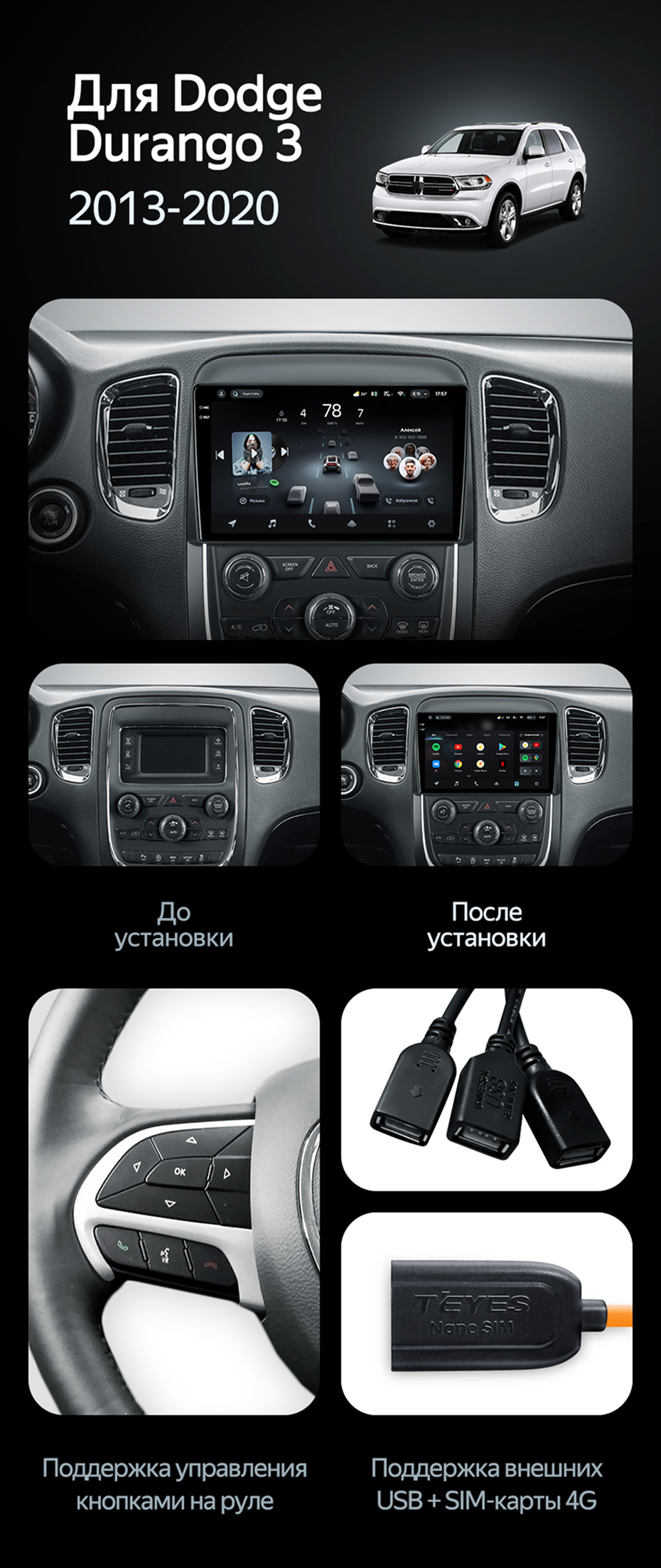 Штатная магнитола Teyes CC3 4/32 Dodge Durango 3 (2013-2020) - купить всего за 40 000 руб. в интернет-магазине в Москве Teyes.com.ru. ✓ Самый лучший выбор мультимедиа ✓ Лучшая замена штатному ГУ ✓ Тел. +7 (800) 775-31-74