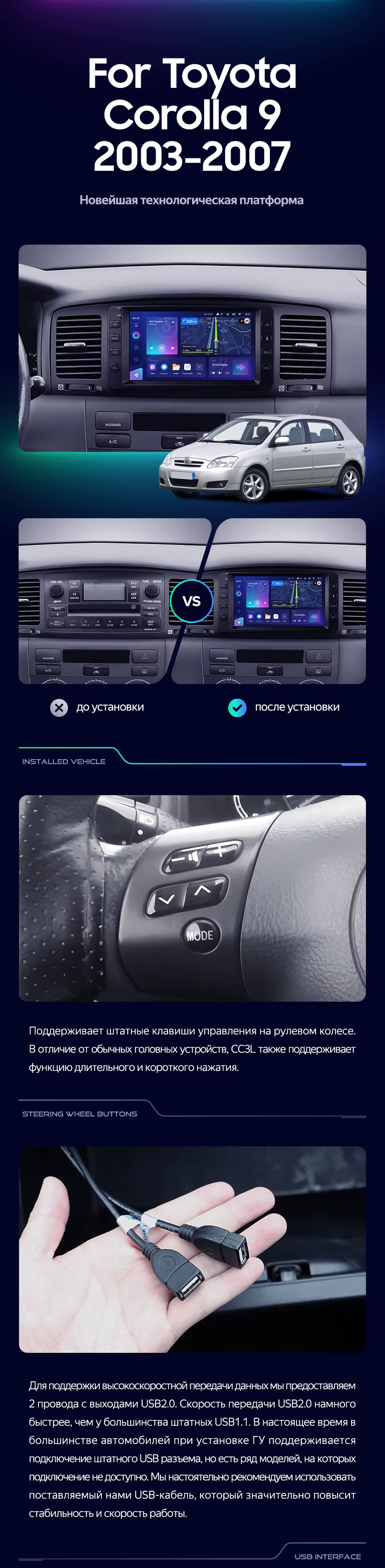 Штатная магнитола Teyes CC3 4/32 Toyota Corolla 9 E120 E130 (2003-2007) 7" - купить всего за 36 700 руб. в интернет-магазине в Москве Teyes.com.ru. ✓ Самый лучший выбор мультимедиа ✓ Лучшая замена штатному ГУ ✓ Тел. +7 (800) 775-31-74