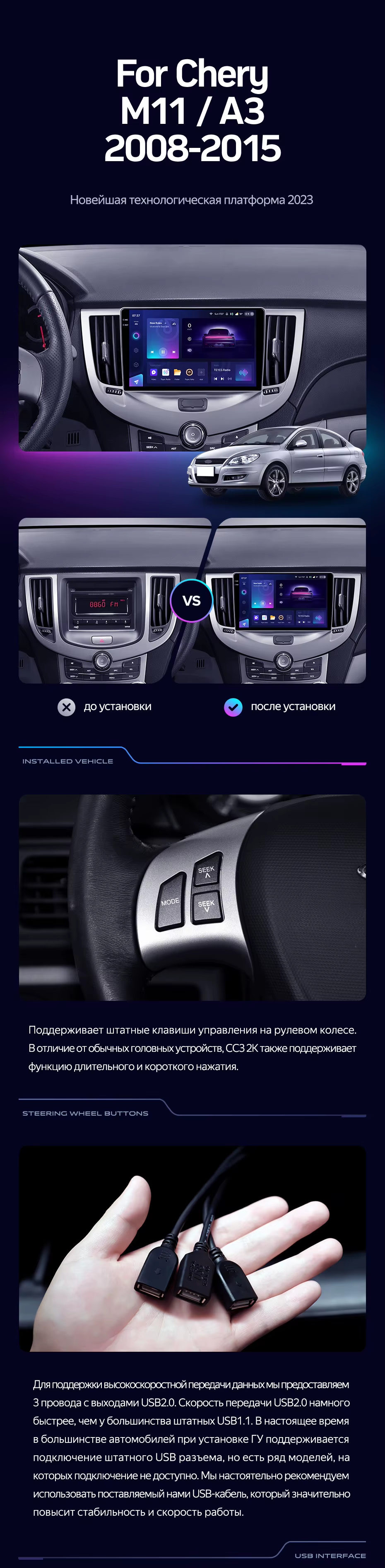 Штатная магнитола Teyes CC3L 4/64 Chery M11 A3 (2008-2015) - купить всего за 28 400 руб. в интернет-магазине в Москве Teyes.com.ru. ✓ Самый лучший выбор мультимедиа ✓ Лучшая замена штатному ГУ ✓ Тел. +7 (800) 775-31-74