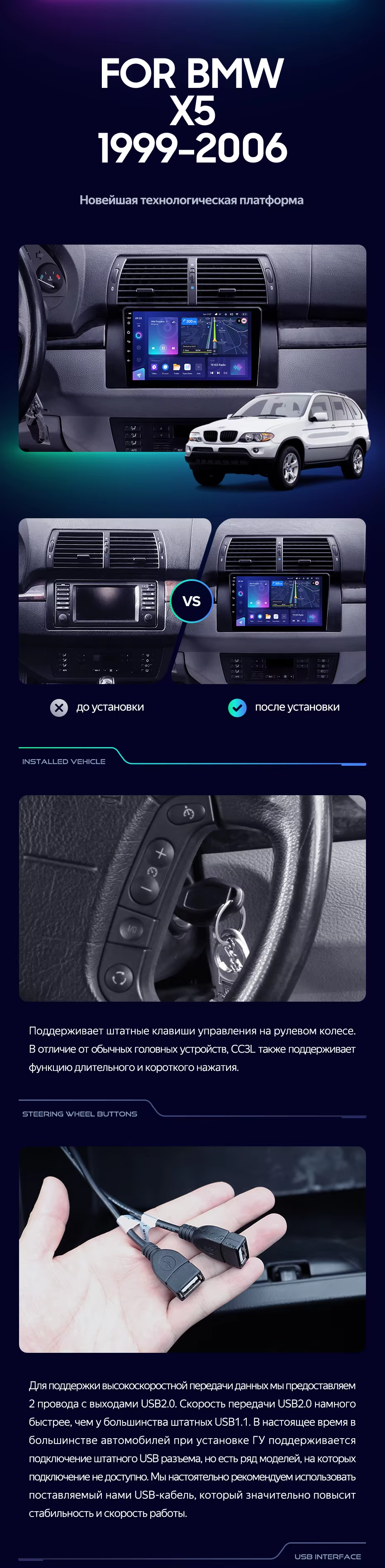 Штатная магнитола Teyes CC3L WiFi 2/32 BMW X5 E39 E53 (1999-2006) - купить всего за 20 600 руб. в интернет-магазине в Москве Teyes.com.ru. ✓ Самый лучший выбор мультимедиа ✓ Лучшая замена штатному ГУ ✓ Тел. +7 (800) 775-31-74