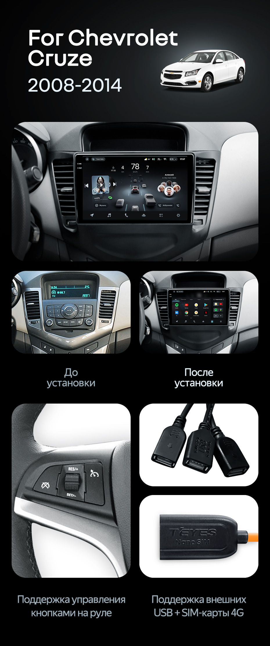 Штатная магнитола Teyes CC4 Pro 12/256 Chevrolet Cruze J300 (2008-2014) - купить всего за 73 200 руб. в интернет-магазине в Москве Teyes.com.ru. ✓ Самый лучший выбор мультимедиа ✓ Лучшая замена штатному ГУ ✓ Тел. +7 (800) 775-31-74