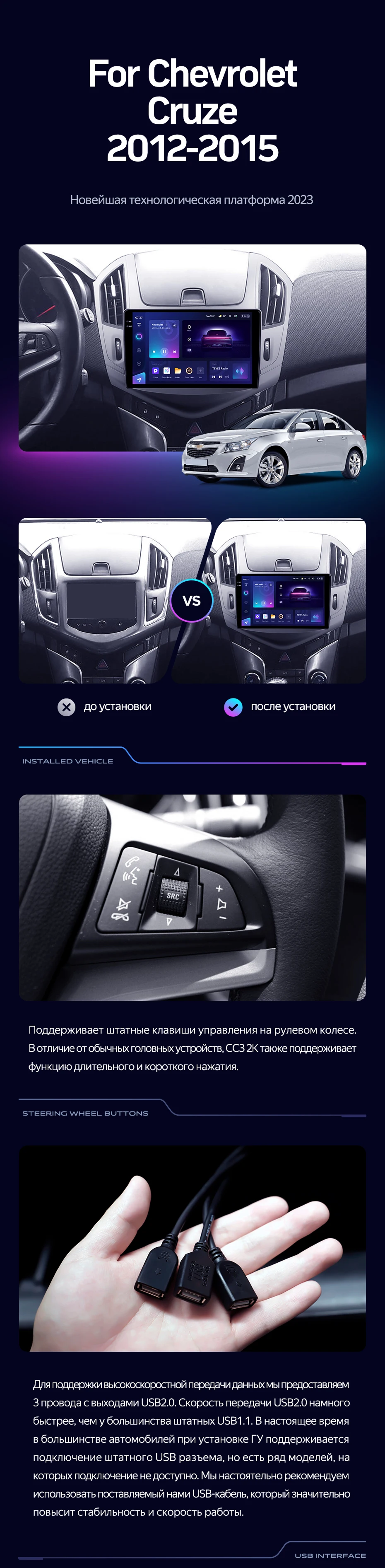 Штатная магнитола Teyes CC4 Pro 12/256 Chevrolet Cruze J300 J308 (2012-2015) F2 (13") (черная) - купить всего за 82 900 руб. в интернет-магазине в Москве Teyes.com.ru. ✓ Самый лучший выбор мультимедиа ✓ Лучшая замена штатному ГУ ✓ Тел. +7 (800) 775-31-74