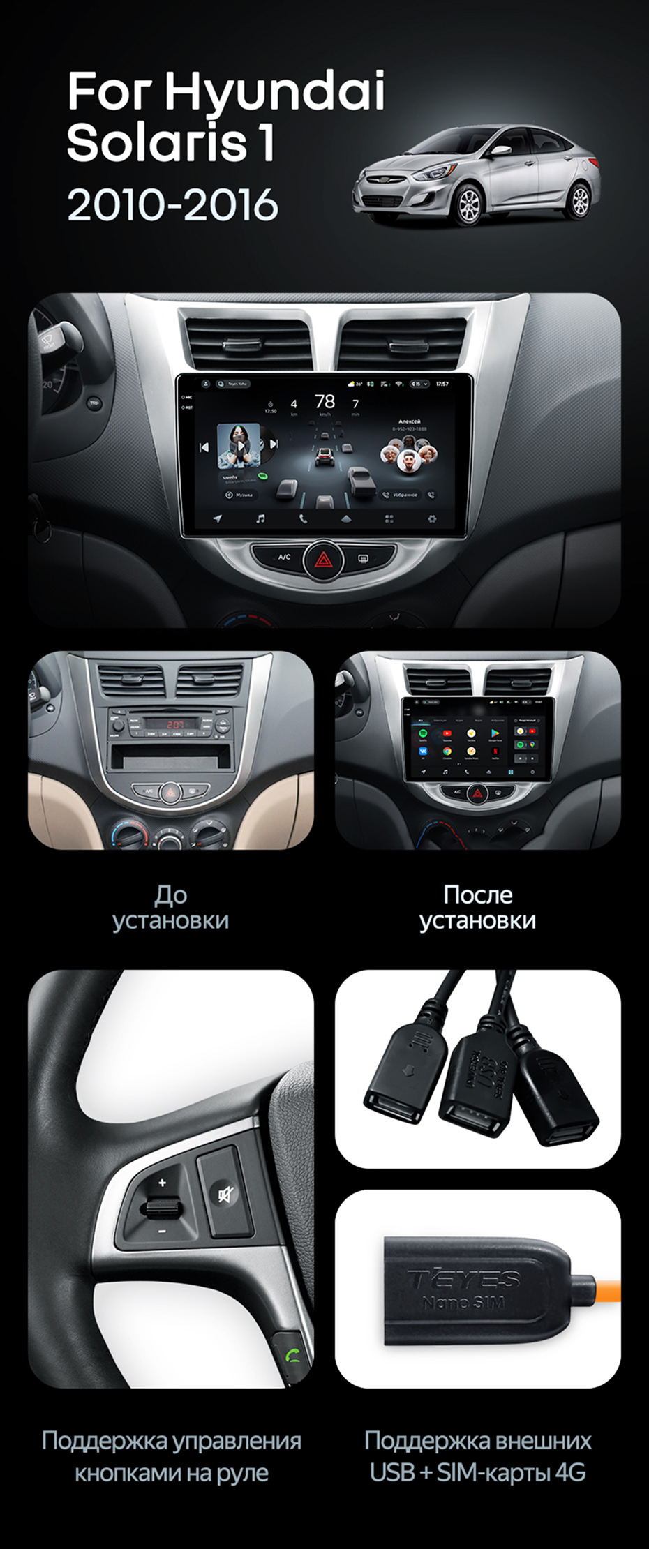 Штатная магнитола Teyes CC4 Pro 12/256 Hyundai Solaris 1 (2010-2016) F1 - купить всего за 71 200 руб. в интернет-магазине в Москве Teyes.com.ru. ✓ Самый лучший выбор мультимедиа ✓ Лучшая замена штатному ГУ ✓ Тел. +7 (800) 775-31-74