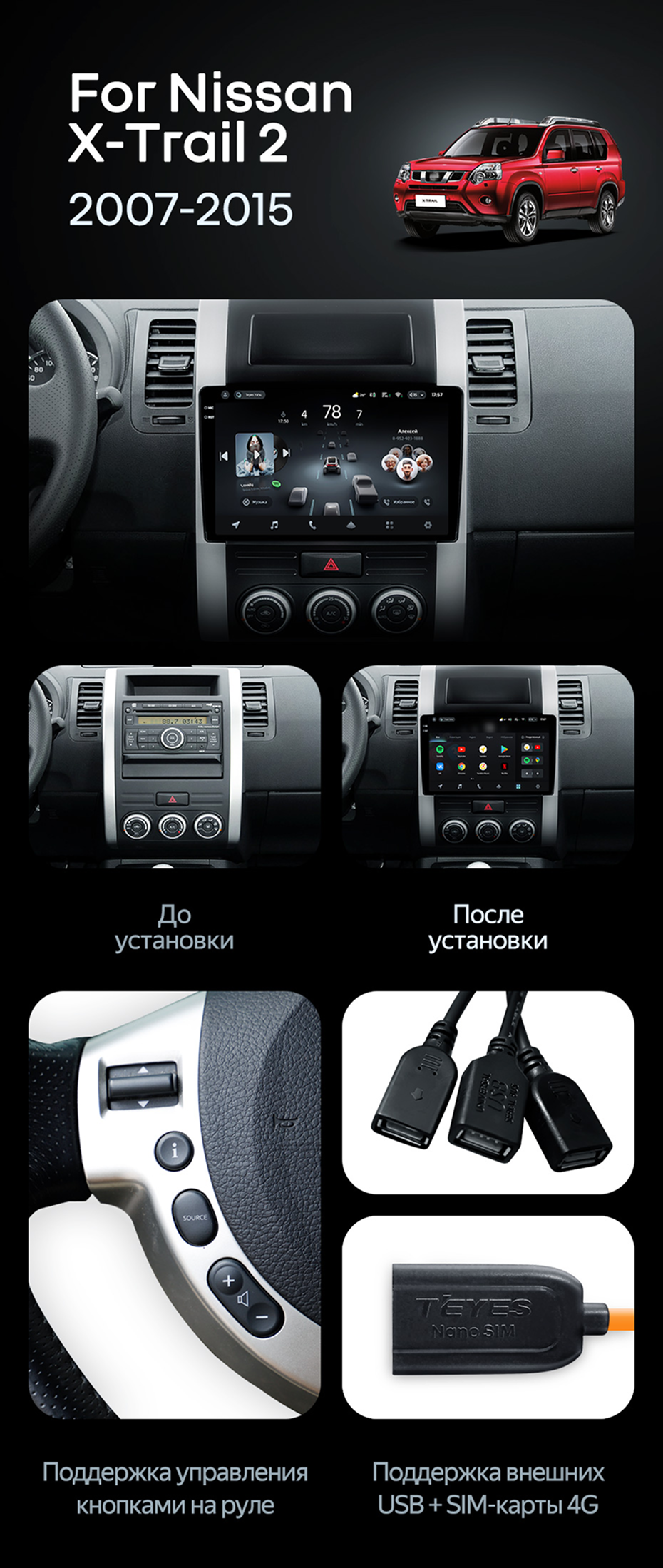 Штатная магнитола Teyes CC4 Pro 12/256 Nissan X-Trail T31 (2007-2015) - купить всего за 72 260 руб. в интернет-магазине в Москве Teyes.com.ru. ✓ Самый лучший выбор мультимедиа ✓ Лучшая замена штатному ГУ ✓ Тел. +7 (800) 775-31-74