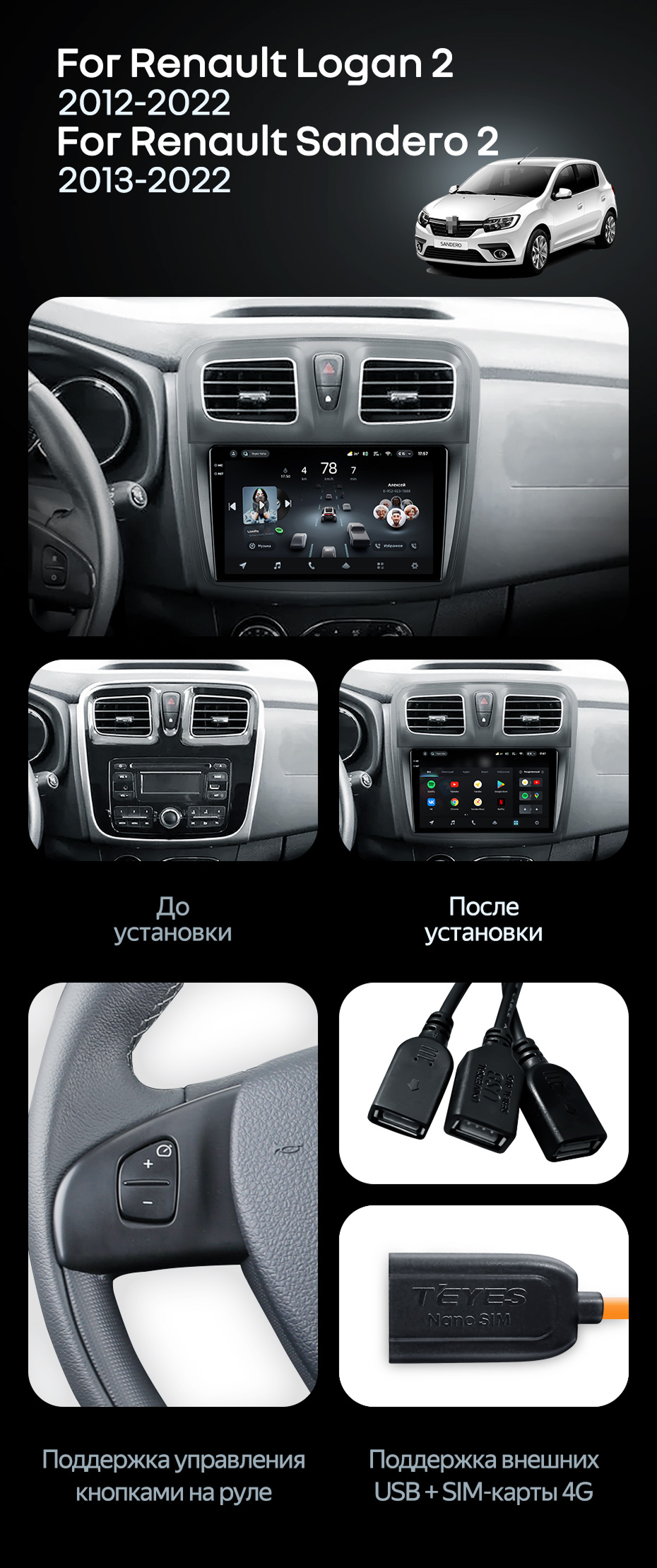 Штатная магнитола Teyes CC4 Pro 12/256 Renault Sandero 2 (2013-2022) F2 - купить всего за 71 180 руб. в интернет-магазине в Москве Teyes.com.ru. ✓ Самый лучший выбор мультимедиа ✓ Лучшая замена штатному ГУ ✓ Тел. +7 (800) 775-31-74