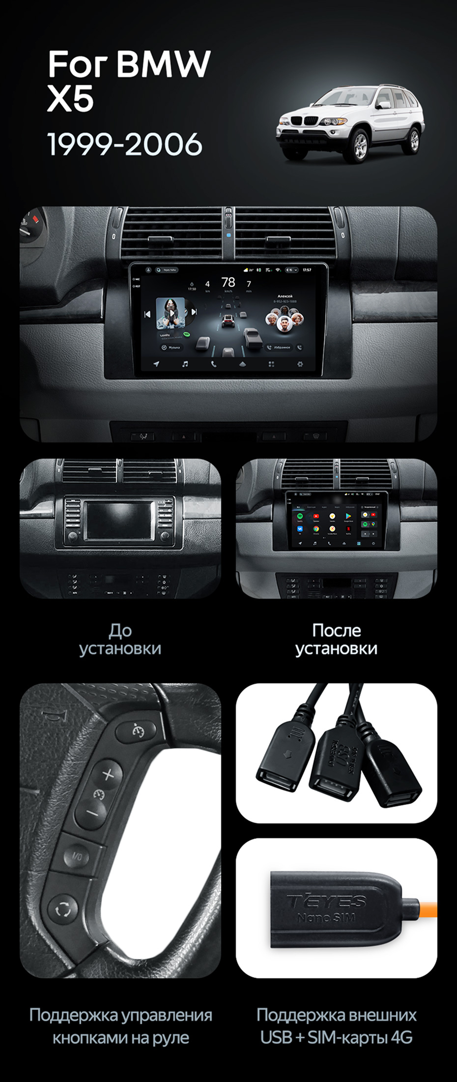 Штатная магнитола Teyes CC4 Pro 8/128 BMW X5 E39 E53 (1999-2006) - купить всего за 63 020 руб. в интернет-магазине в Москве Teyes.com.ru. ✓ Самый лучший выбор мультимедиа ✓ Лучшая замена штатному ГУ ✓ Тел. +7 (800) 775-31-74