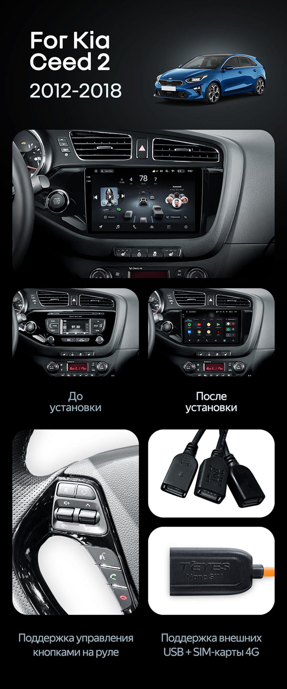 Штатная магнитола Teyes CC4 Pro 8/128 Kia Ceed 2 JD (2012-2018) - купить всего за 61 550 руб. в интернет-магазине в Москве Teyes.com.ru. ✓ Самый лучший выбор мультимедиа ✓ Лучшая замена штатному ГУ ✓ Тел. +7 (800) 775-31-74
