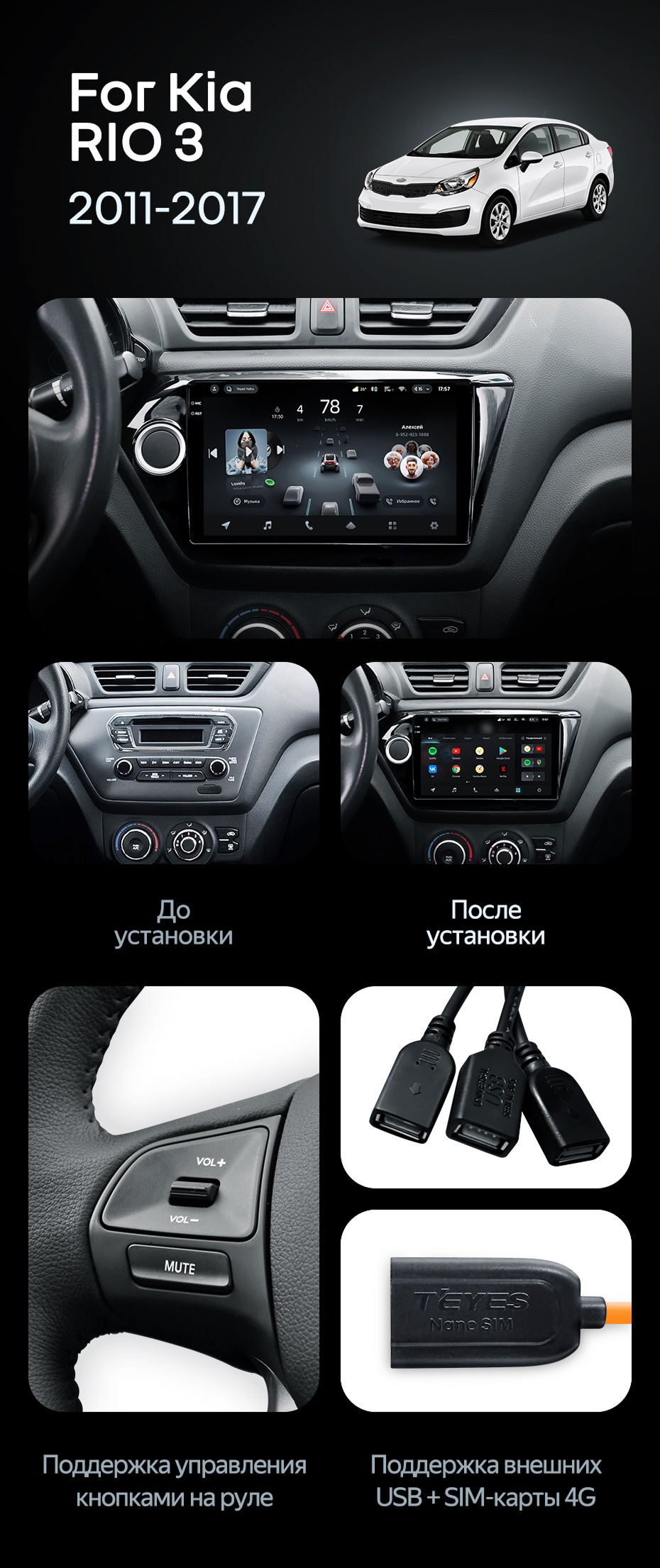 Штатная магнитола Teyes CC4 Pro 8/128 Kia Rio 3 (2011-2017) - купить всего за 61 220 руб. в интернет-магазине в Москве Teyes.com.ru. ✓ Самый лучший выбор мультимедиа ✓ Лучшая замена штатному ГУ ✓ Тел. +7 (800) 775-31-74