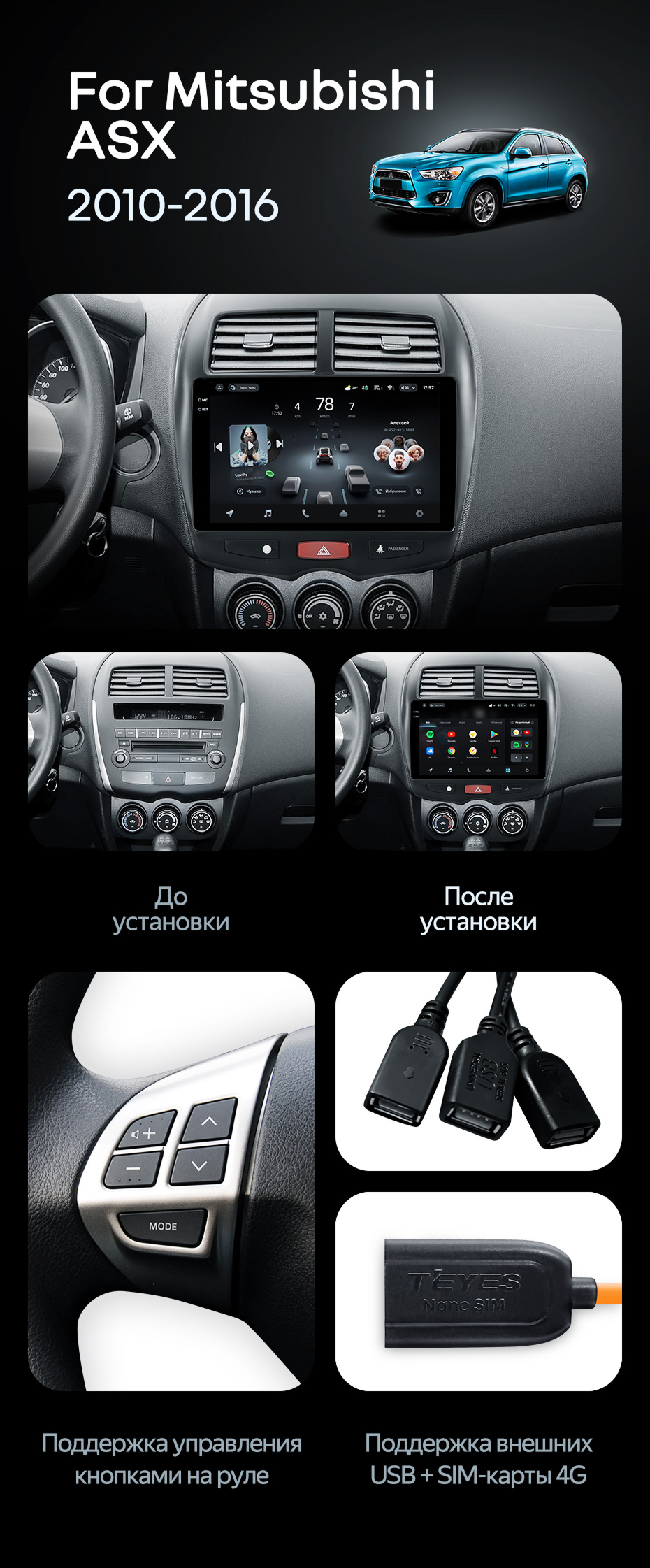 Штатная магнитола Teyes CC4 Pro 8/128 Mitsubishi ASX 1 (2010-2016) Тип-A - купить всего за 62 020 руб. в интернет-магазине в Москве Teyes.com.ru. ✓ Самый лучший выбор мультимедиа ✓ Лучшая замена штатному ГУ ✓ Тел. +7 (800) 775-31-74