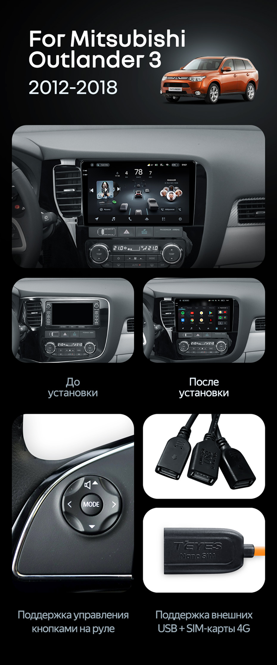 Штатная магнитола Teyes CC4 Pro 8/128 Mitsubishi Outlander 3 (2012-2018) Тип-A - купить всего за 61 960 руб. в интернет-магазине в Москве Teyes.com.ru. ✓ Самый лучший выбор мультимедиа ✓ Лучшая замена штатному ГУ ✓ Тел. +7 (800) 775-31-74