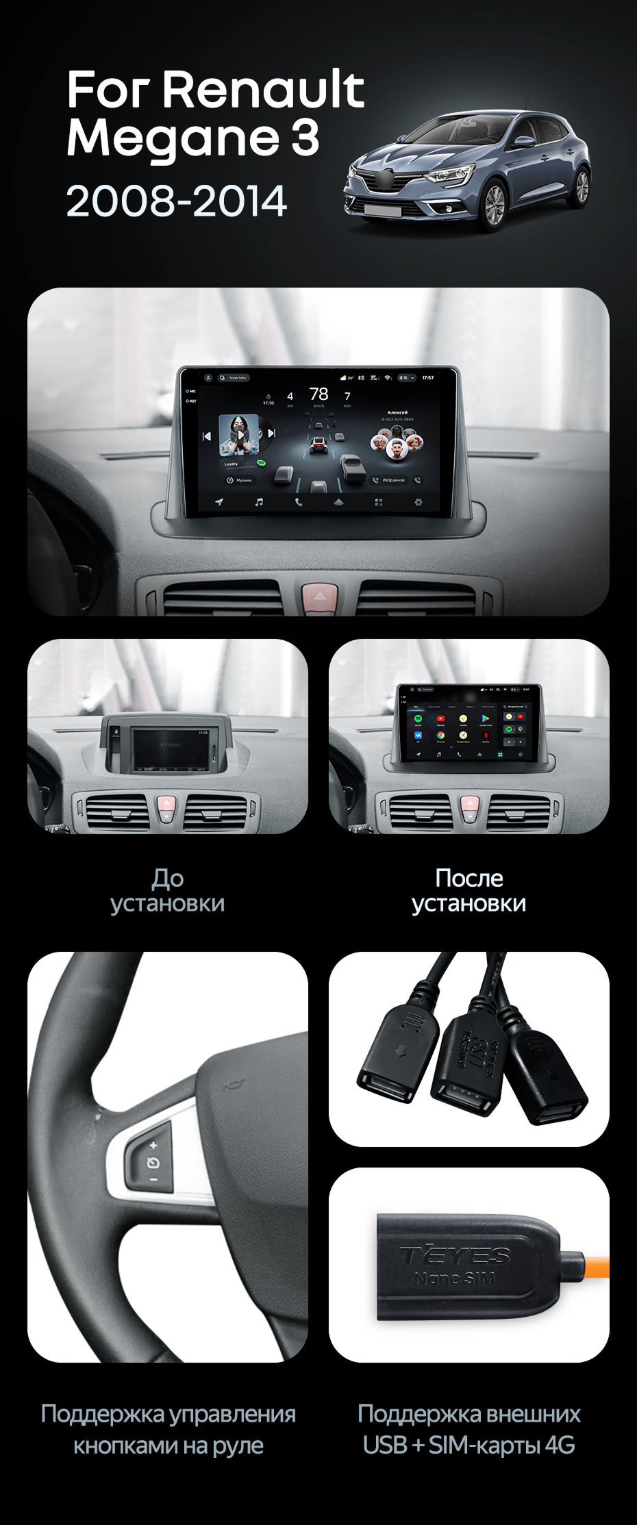 Штатная магнитола Teyes CC4 Pro 8/128 Renault Megane 3 (2008-2014) - купить всего за 64 720 руб. в интернет-магазине в Москве Teyes.com.ru. ✓ Самый лучший выбор мультимедиа ✓ Лучшая замена штатному ГУ ✓ Тел. +7 (800) 775-31-74