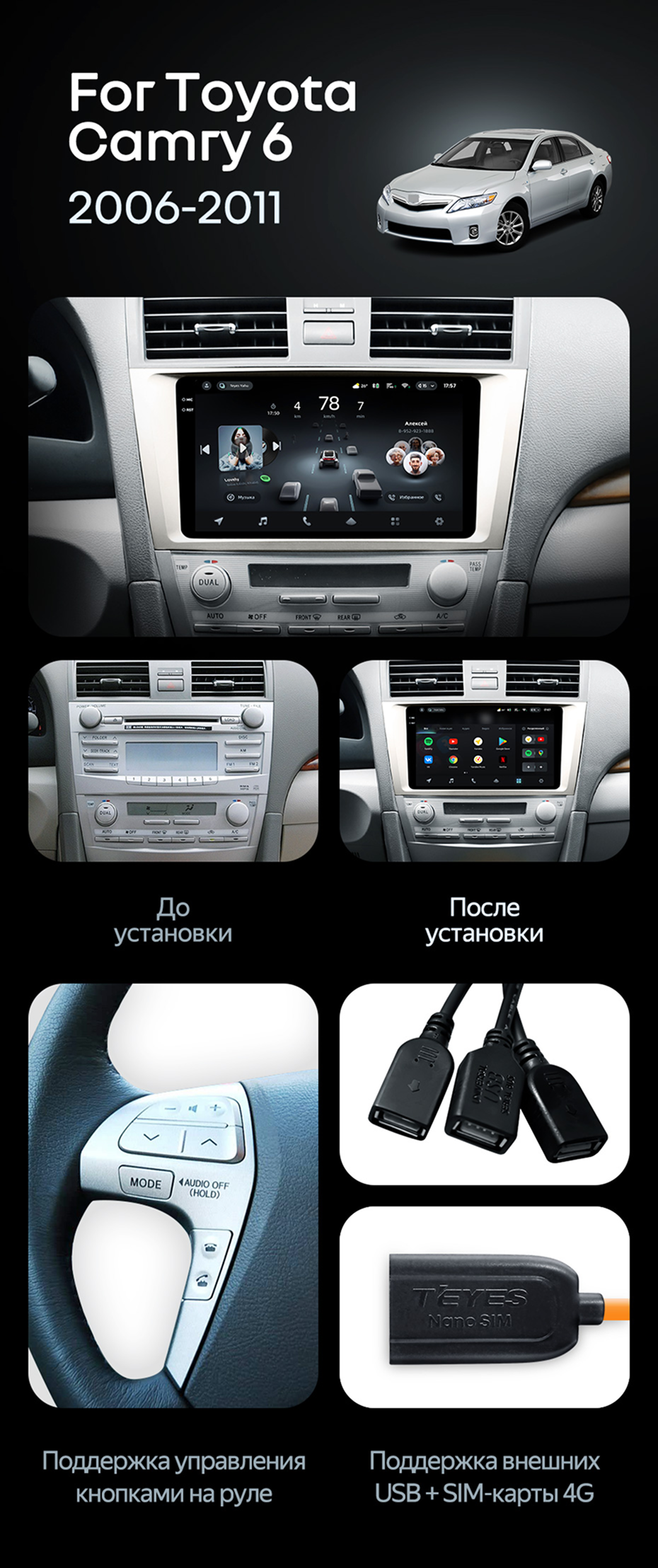 Штатная магнитола Teyes CC4 Pro 8/128 Toyota Camry 6 XV 40 50 (2006-2011) F2 - купить всего за 62 920 руб. в интернет-магазине в Москве Teyes.com.ru. ✓ Самый лучший выбор мультимедиа ✓ Лучшая замена штатному ГУ ✓ Тел. +7 (800) 775-31-74