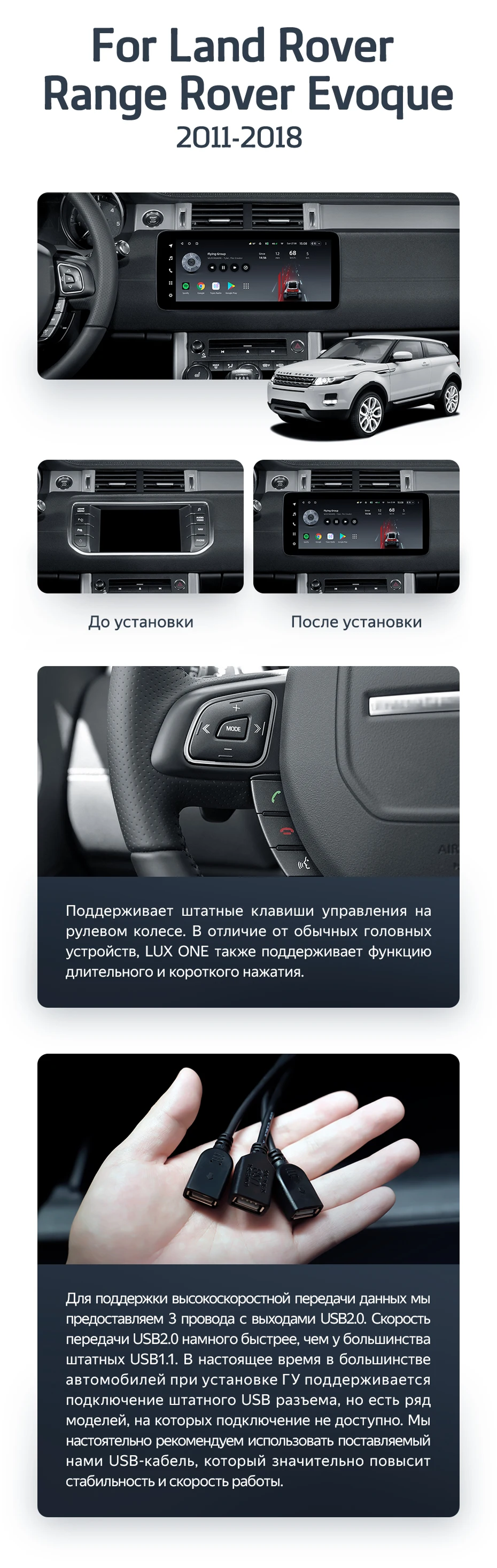 Штатная магнитола Teyes LUX ONE 360 6/128 Land Rover Range Rover Evoque (2011-2018) Тип-B - купить всего за 79 200 руб. в интернет-магазине в Москве Teyes.com.ru. ✓ Самый лучший выбор мультимедиа ✓ Лучшая замена штатному ГУ ✓ Тел. +7 (800) 775-31-74