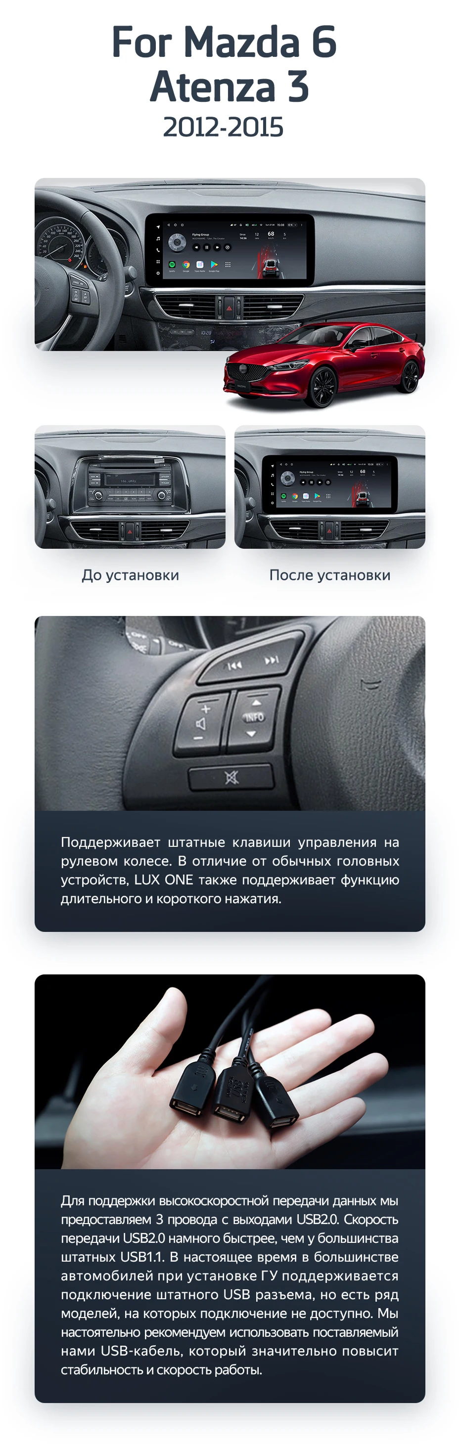 Штатная магнитола Teyes LUX ONE 360 6/128 Mazda Atenza 3 (2012-2015) Тип-B Правый руль - купить всего за 69 500 руб. в интернет-магазине в Москве Teyes.com.ru. ✓ Самый лучший выбор мультимедиа ✓ Лучшая замена штатному ГУ ✓ Тел. +7 (800) 775-31-74