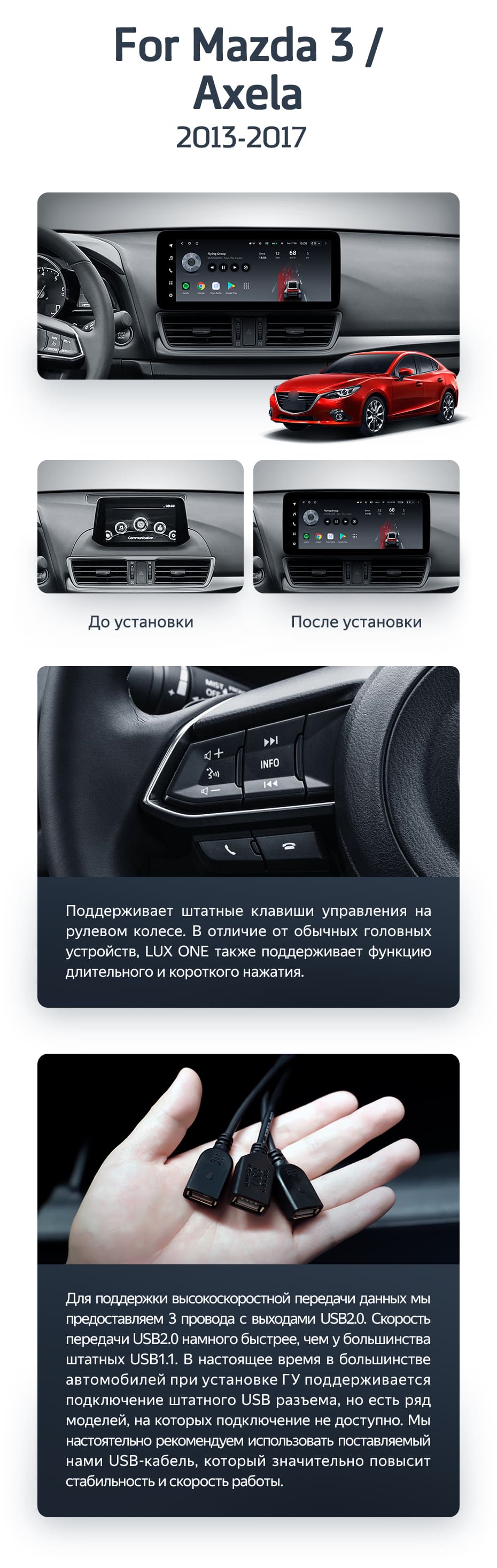 Штатная магнитола Teyes LUX ONE 360 6/128 Mazda Axela 3 (2013-2017) Тип-A Правый руль - купить всего за 68 000 руб. в интернет-магазине в Москве Teyes.com.ru. ✓ Самый лучший выбор мультимедиа ✓ Лучшая замена штатному ГУ ✓ Тел. +7 (800) 775-31-74