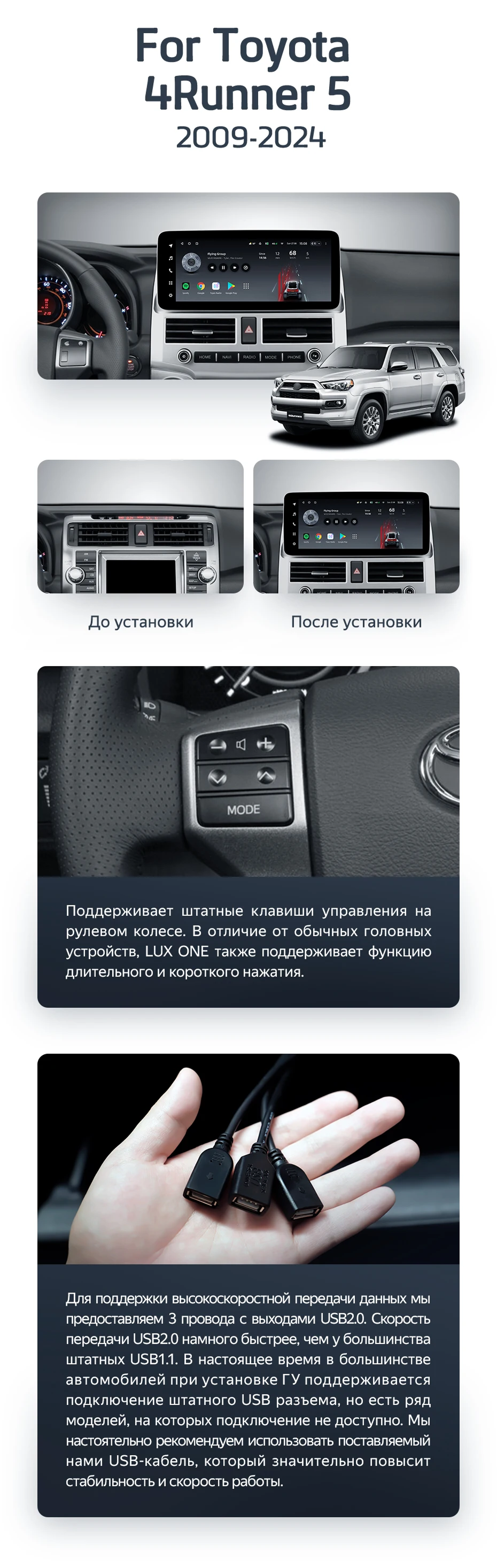 Штатная магнитола Teyes LUX ONE 360 6/128 Toyota 4Runner 5 N280 (2009-2024) - купить всего за 70 500 руб. в интернет-магазине в Москве Teyes.com.ru. ✓ Самый лучший выбор мультимедиа ✓ Лучшая замена штатному ГУ ✓ Тел. +7 (800) 775-31-74