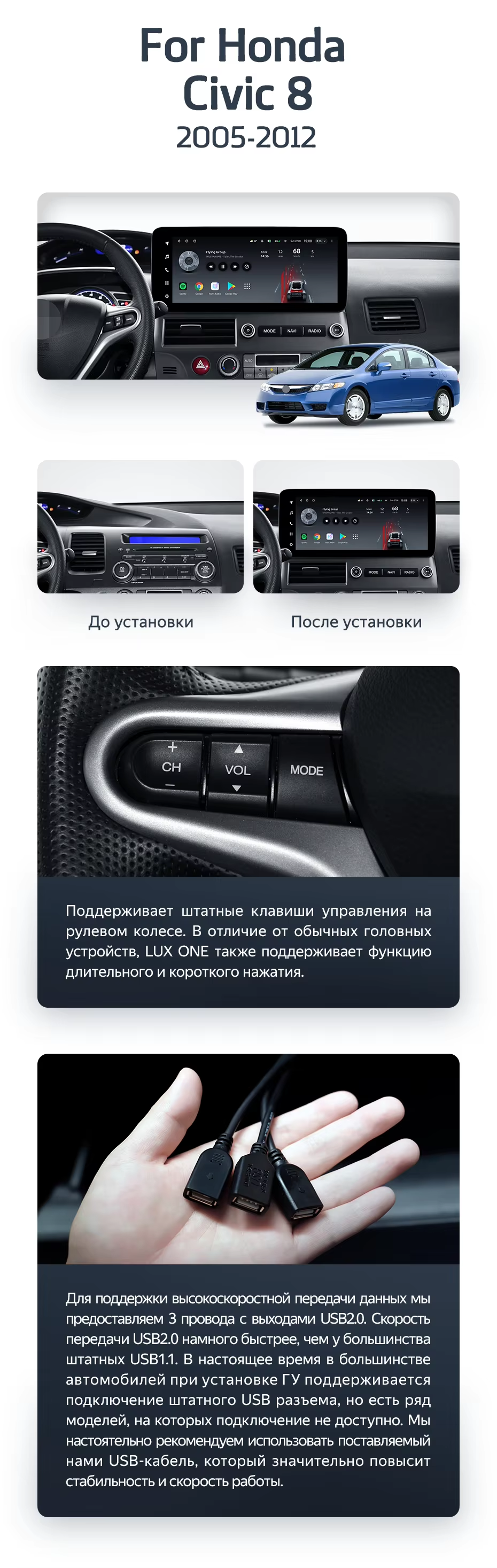 Штатная магнитола Teyes LUX ONE 4/32 Honda Civic 8 FK FN FD (2005-2012) - купить всего за 43 100 руб. в интернет-магазине в Москве Teyes.com.ru. ✓ Самый лучший выбор мультимедиа ✓ Лучшая замена штатному ГУ ✓ Тел. +7 (800) 775-31-74