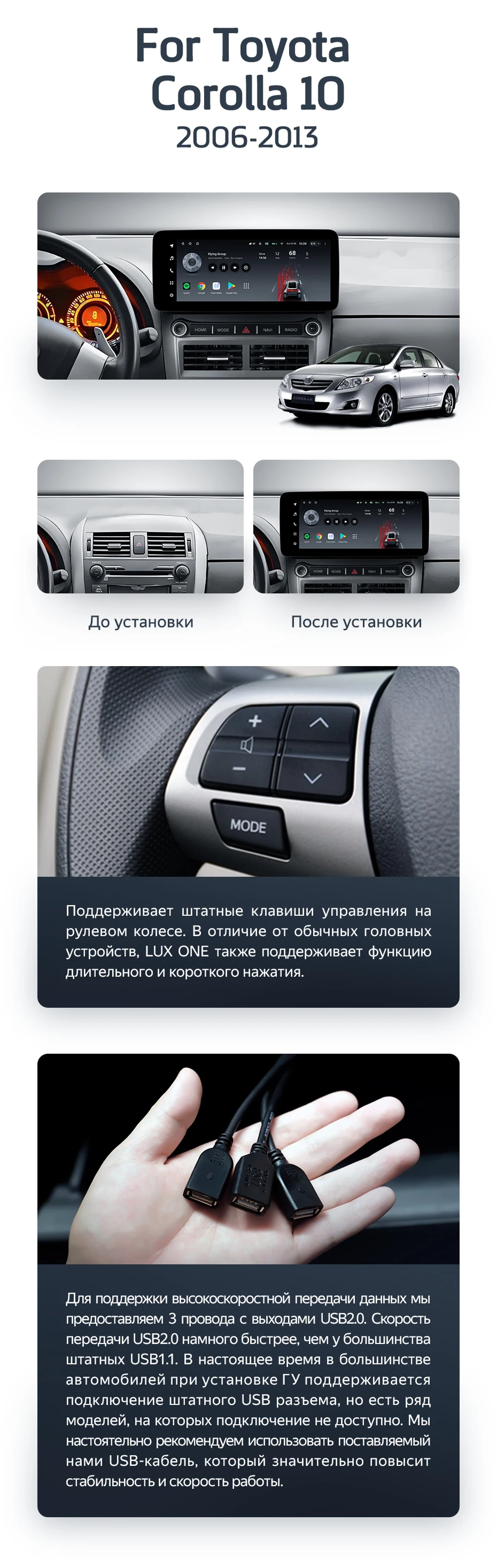 Штатная магнитола Teyes LUX ONE 4/32 Toyota Corolla 10 E140 E150 (2006-2013) - купить всего за 43 200 руб. в интернет-магазине в Москве Teyes.com.ru. ✓ Самый лучший выбор мультимедиа ✓ Лучшая замена штатному ГУ ✓ Тел. +7 (800) 775-31-74
