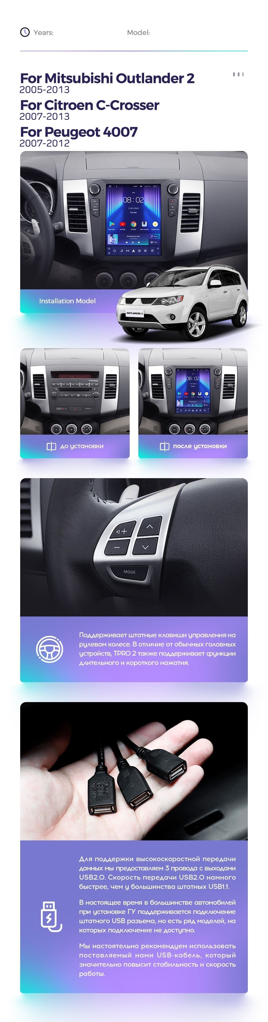 Штатная магнитола Tesla style Teyes TPRO 2 4/64 Peugeot 4007 (2007-2012) Тип-B - купить всего за 39 900 руб. в интернет-магазине в СПб Teyes.com.ru. ✓ Самый лучший выбор мультимедиа ✓ Лучшая замена штатному ГУ ✓ Тел. +7 (800) 775-31-74