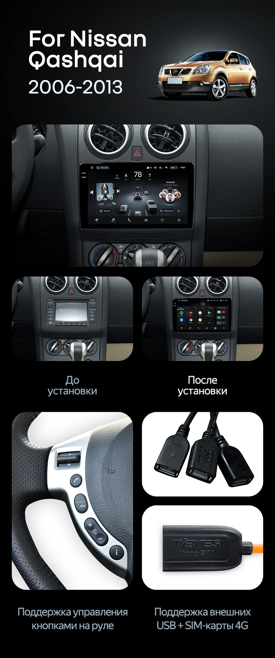 Штатная магнитола Teyes CC4 Pro 8/128 Nissan Qashqai 1 J10 (2006-2013) F1 - купить всего за 64 635 руб. в интернет-магазине в СПб Teyes.com.ru. ✓ Самый лучший выбор мультимедиа ✓ Лучшая замена штатному ГУ ✓ Тел. +7 (800) 775-31-74