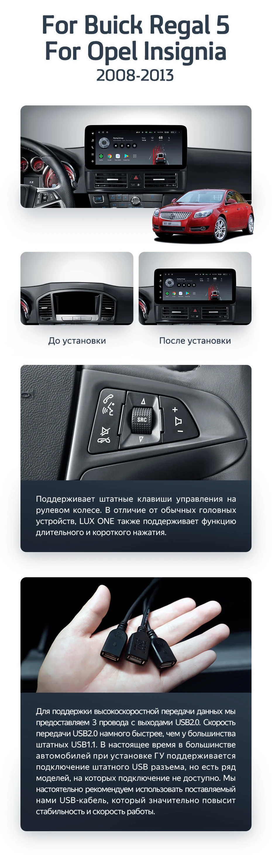 Готовый установочный комплект для магнитолы Buick Regal 5 / Opel Insignia G09 ZG09 (2008-2013) 12,3 дюйма в штатное место, включает переходную рамку и проводку.